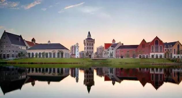 进入小镇,能够看到一排排城堡式的建建,风车、钟楼、灯塔等,极具欧式风情的建建触目皆是。穿过横跨环城水系的廊桥,又顿时被一片白墙红瓦的建建包抄,令人感受仿佛实的置身欧洲的某个小镇中。