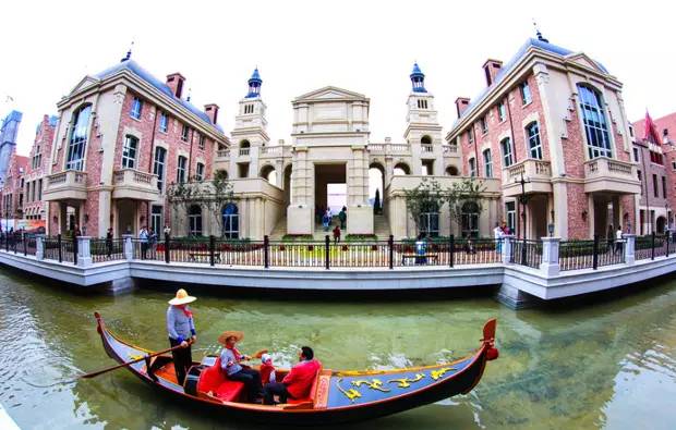 进入小镇,能够看到一排排城堡式的建建,风车、钟楼、灯塔等,极具欧式风情的建建触目皆是。穿过横跨环城水系的廊桥,又顿时被一片白墙红瓦的建建包抄,令人感受仿佛实的置身欧洲的某个小镇中。